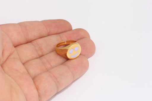 17-18mm 24k Shiny Gold Smiley Rings,Shiny Light Purple, FRB126
