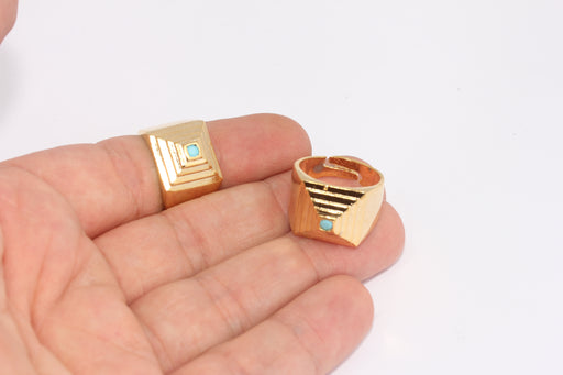 17-18mm 24k Shiny Gold Cube Rings, Turquoise Stone Rings, FRB12