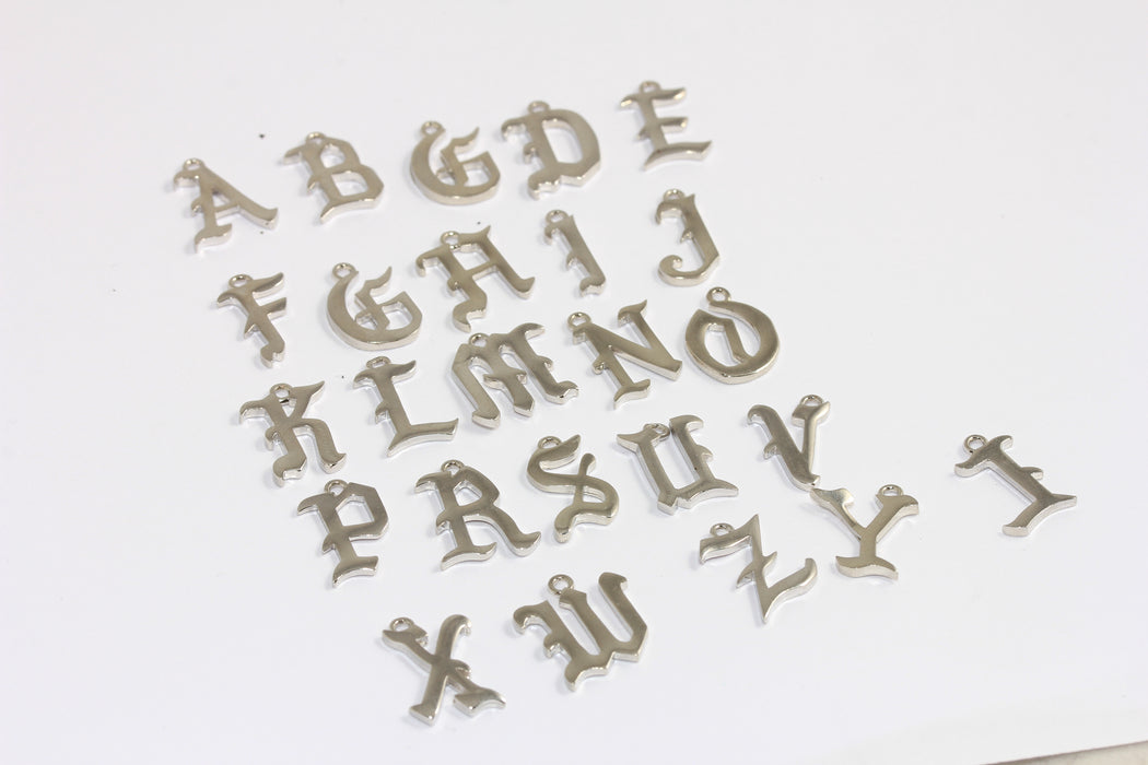 12x14mm Rhodium Plated Letters, Letter Charms, Letter Initial Charms, Personalized Necklace, Alphabet Beads, HRF82