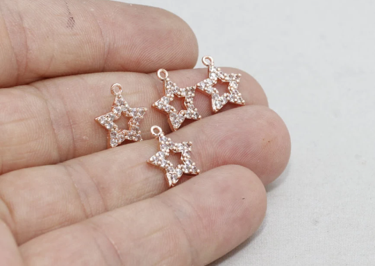11x12mm Rose Gold Star Charms, Cubic Zirconia Star, ZRCN224