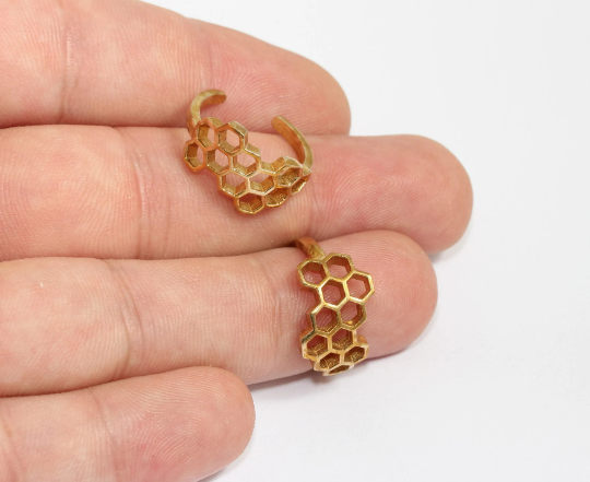 16-18mm Raw Brass Honeycomb Ring, Bee Ring, CHK544-1