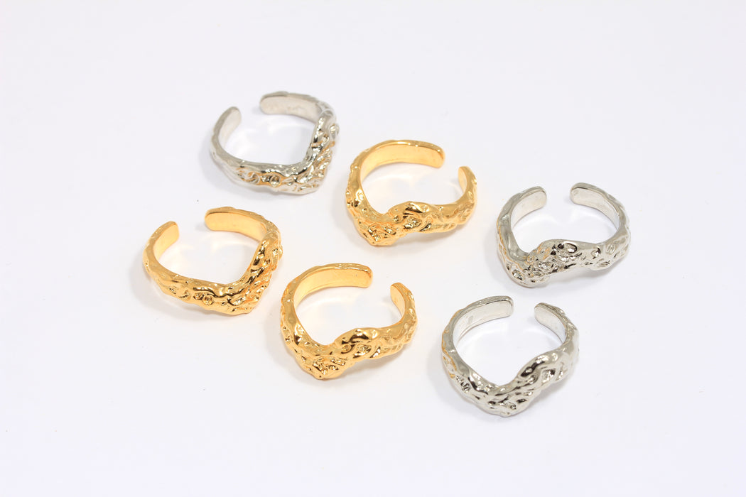 17-18mm 24k Shiny Gold Or Rhodium Irregular Ring, Hammered Chevron Ring,