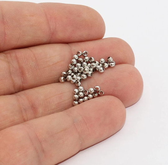 2mm Rhodium Plated Beads, Spacer Beads, Hollow Beads, MTE965