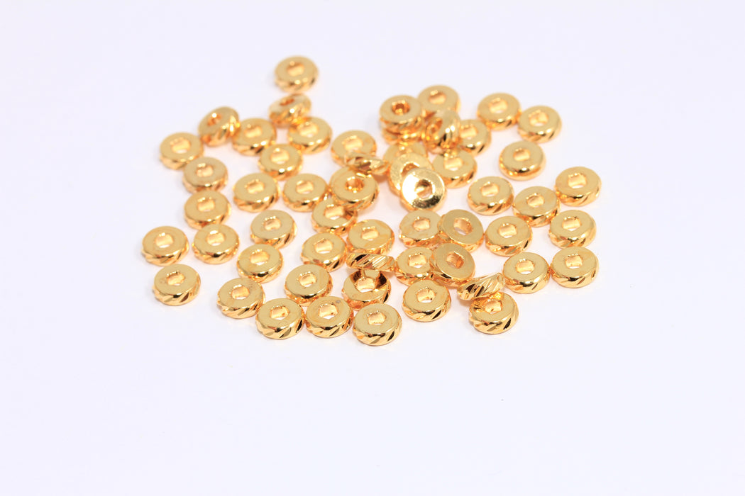 5,8mm 24k Shiny Gold Laser Cut Beads, Faceted Charms, Rondelle Beads, Textured Spacer Beads, MTE499