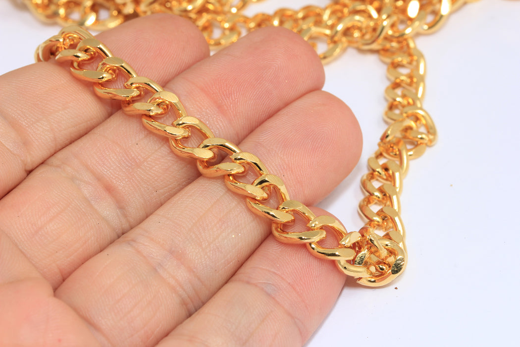 7,8mm 24k Shiny Gold Plated Gold Faceted Chain, Thick Strong Curb Chain, BXB372-6