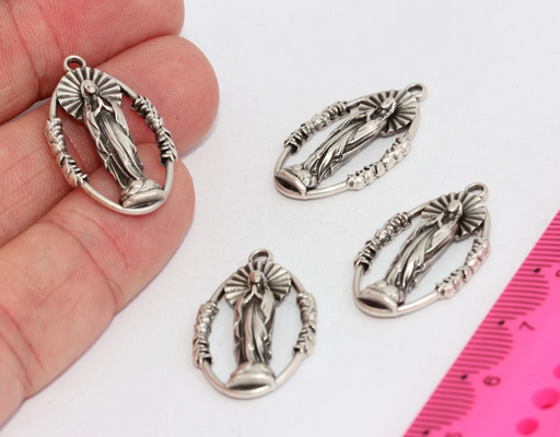 18x30mm Antique Silver Plated Mother Mary, Virgin Mary , MTE1217