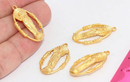 18x30mm 24k Matte Gold Mother Mary Pendant, Mother MTE1209