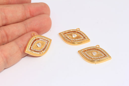 18x29mm 24k Shiny Gold CZ Eye Charm, Micro Pave Eye Pendant, BXB81-7