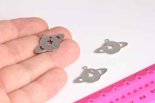 18x27mm Rhodium Plated Saturn, Planet Pendant, Space Necklace, Planet Star, Saturn Necklace, Star Pendant, Rhodium Findings, CMR138-1