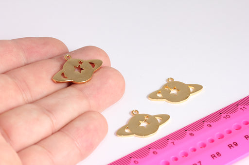 18x27mm 24k Shiny Gold Saturn, Planet Pendant, Space Necklace, Planet Star, Saturn Necklace, Star Pendant, Gold Plated Findings, ETS37-2