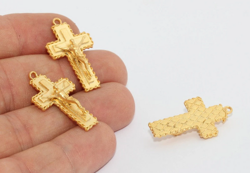 18x30mm 24k Shiny Gold Cross Pendant, Cross Necklace, MTE17