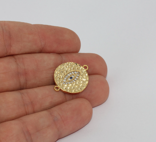 18x24mm 24k Shiny Gold Evil Eye Medallion, Evil Eye,Gold MTE1502