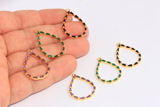 19x28mm 24k Shiny Gold CZ Teardrop Pendant, Baguette Stone Drop Charms, CHK69-8