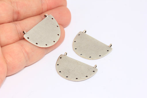 19x31mm Antique Silver Semicircle Charms, Half Moon Charms, Multi Hole Bib Pendant, EST177