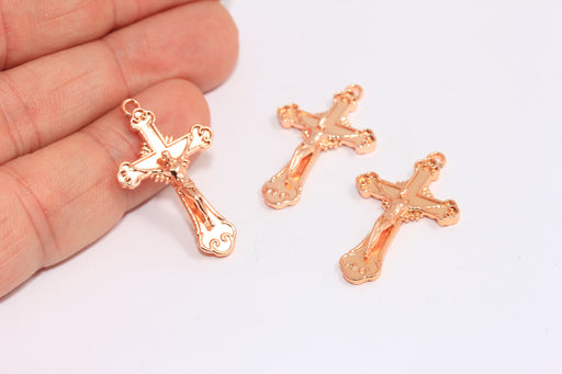 19x31mm Rose Gold Plated Cross Pendant, Jesus Christ Charms, Religious Catholic Pendant, MTE1200