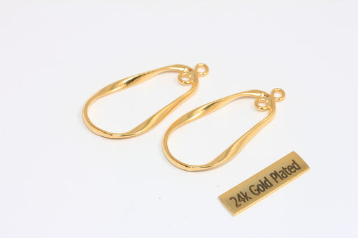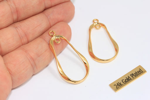 19x34mm 24k Shiny Gold Oval Ring Pendant, Twisted Oval Necklace Charms, Irregular Oval Connectors, Outline Charms, XP90