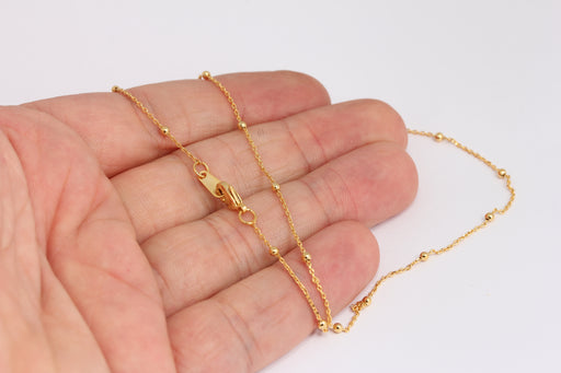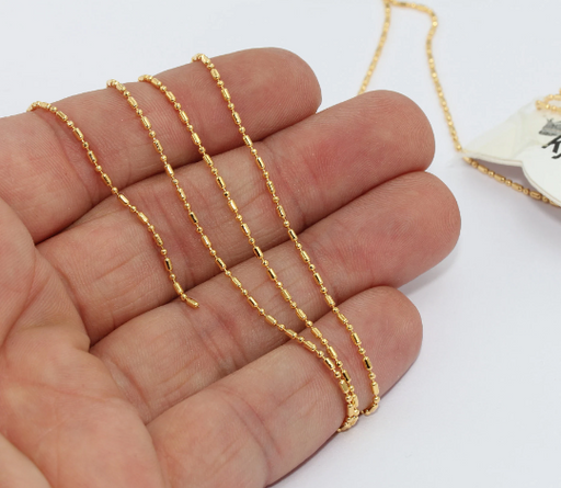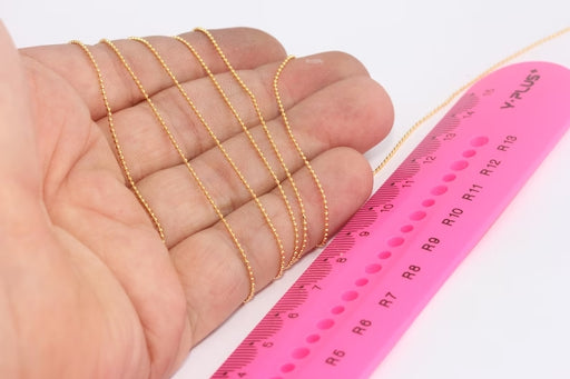 Material : BrassChain Thickness : 1mm Ball Size: 2mmColor : 24k Shiny Gold Plated Length : OptionalQuantity : Optional