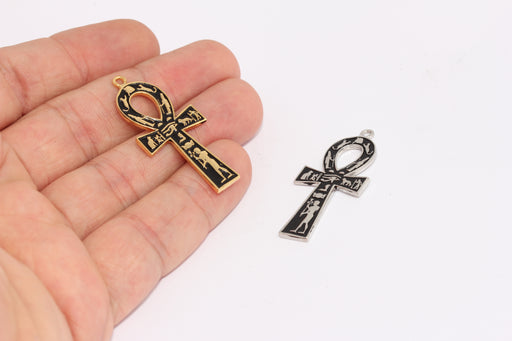 19x42mm 24k Shiny Gold/Silver Ankh Charm, Wholesale , Gold XP2