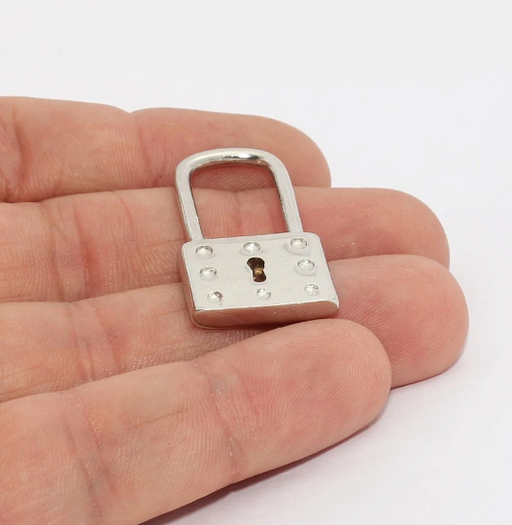 19x33mm Silver Plated Padlock Charms, Silver Pendant,Silver MTE952