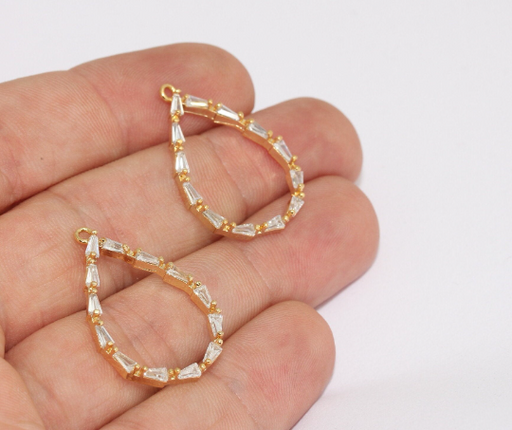 Material : BrassSize : 19x30mmColor : 24k Shiny Gold PlatedStone Color: WhiteQuantity : Optional