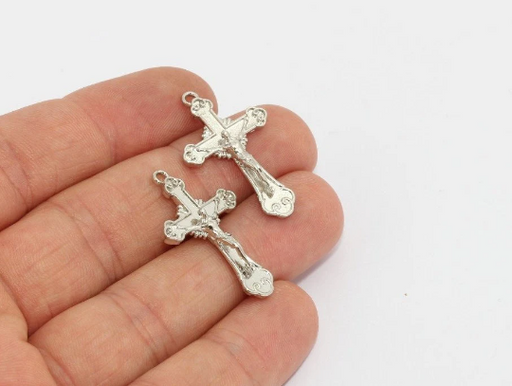 19x31mm Rhodium Plated Gold Cross Pendant, Cross , Brass MTE1196