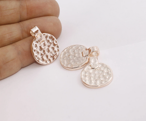 19x25mm Rose Gold Hammered Coins, Coin Medallion, Charms ROSE654