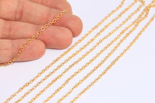 2,5mm 24k Shiny Gold Oval Rolo Chain, Gold Cable Chain, BXB394
