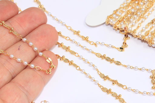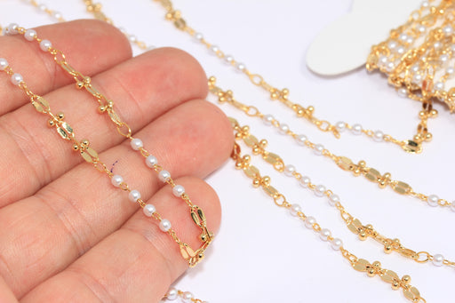 2,5mm 24k Shiny Gold Pearl Chain, Beaded Chains, Chain With Pearl Beads, Ankle Bracelet Chain, BXB178-5