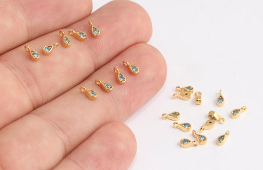 2,5x6mm 24k Shiny Gold CZ Drop Beads, Turquoise Micro Pave Beads,