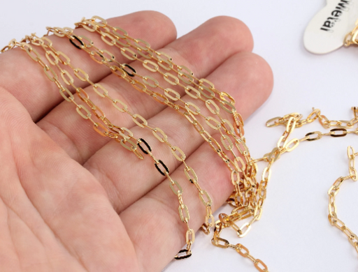 2,5x6mm 24k Shiny Gold Link Chain, Gold Bar Chain, Gold CHK76