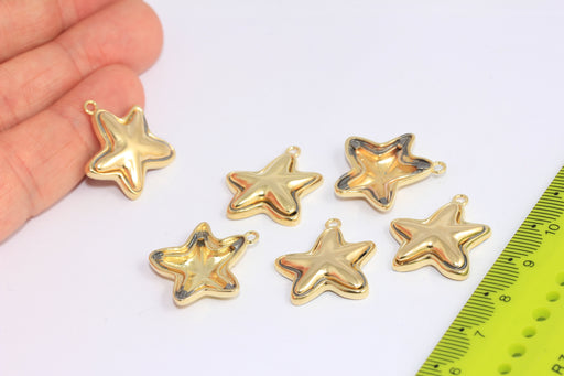 20mm Raw Brass Star Beads, Puffed Star Charms, SOM222