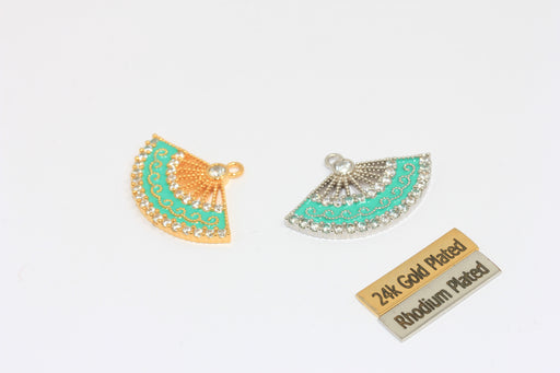 20x32mm Shiny Gold Or Rhodium Plated CZ Sector Charms, Micro Pave White Stone Color Fan Pendant, Green Enamel Sector Charm, SLM898