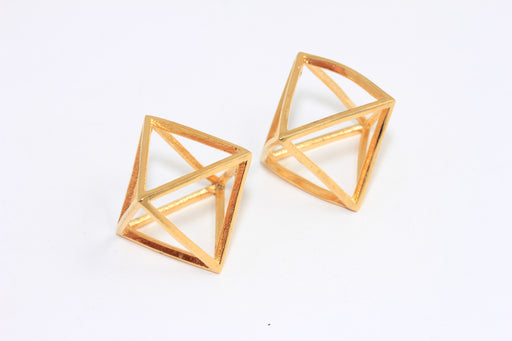 20x33mm 24k Shiny Gold Plated Pyramid Pendant, Diamond Necklace, Open Prism Charms, BRT367