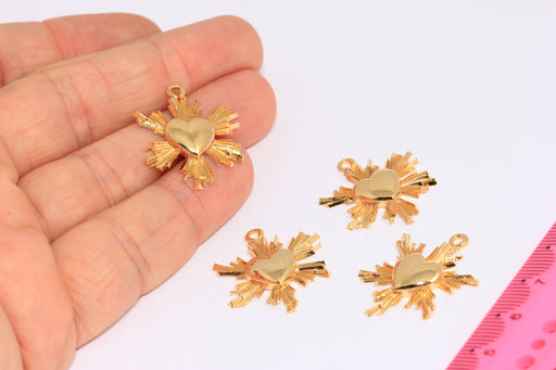 20x35mm 24k Shiny Gold Heart Medallion, Love Necklace Charms, BRT15-1