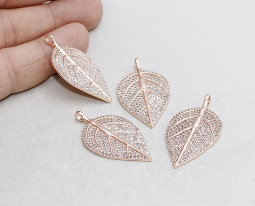 20x38mm Rose Gold Leaf Charms, CZ Leaf Pendant, Micro , ZRCN216