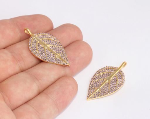 20x38mm 22k Shiny Gold Leaf Charms, CZ Leaf Pendant, ZRCN200