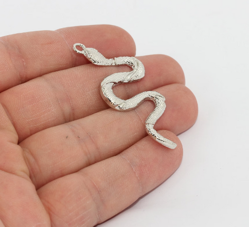 20x50mm Rhodium Plated Snake Charm, Snake Pendant, MTE1307