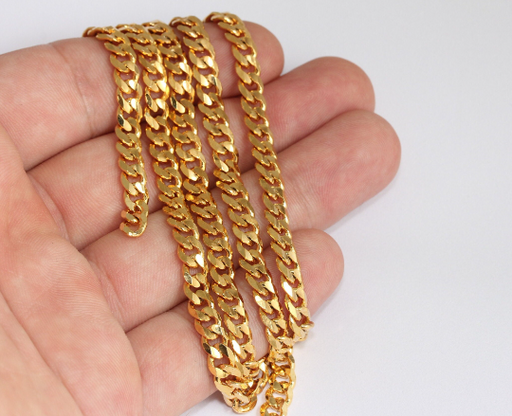 5,5x7mm 24k Shiny Gold Faceted Chain, Strong Curb , CHK614