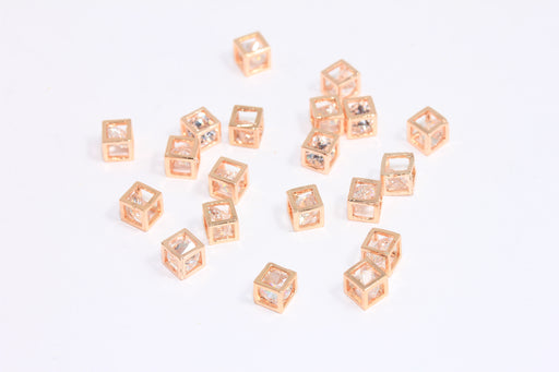 5mm Rose Gold Cube Beads, Open Cube Beads, CZ Crystal Cube Charms, ROSE50