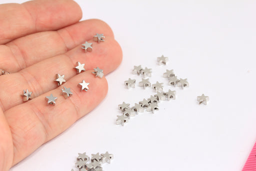 5mm Rhodium Plated Star Charms, Mini Star Beads, Bracelet Star Beads, Drop Beads, FNL69