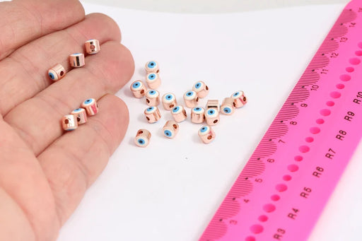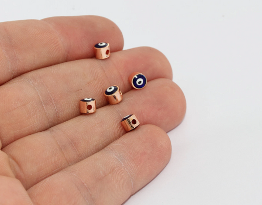 5mm Rose Gold Evil Eye Beads, Enamel Evil Eye Charms, MTE1428