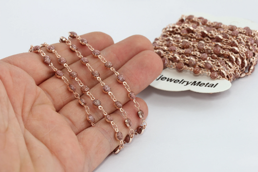 5mm Rose Gold Crystal Chain, Chain With Stone Beads, Rosary Style Bead Chain, Bulk Lot Chain, Rose Gold Plated Chains, FJC, BXB170
