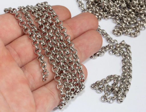 5mm Rhodium Plated Rolo Chain, Soldered Chain, Bulk Chain, CHK585-1