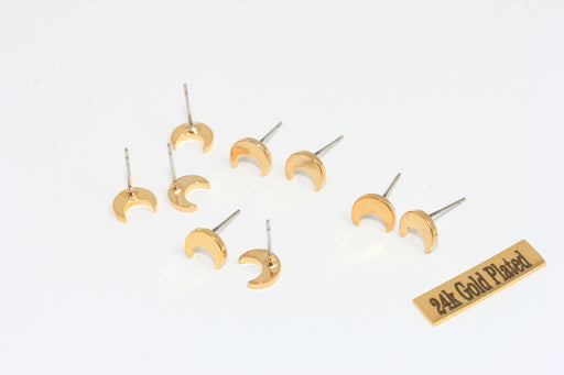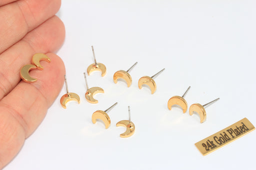 7x8mm 24k Shiny Gold Moon Earrings, Moon Stud Earrings, MLS573