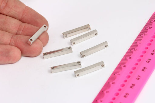 Silver Plated Bar, Solid Brass Bar, Two Hole Bar, Stamping Bar, Bar Necklace, Personalized Charms, Silver Plated Findings, MTE661
