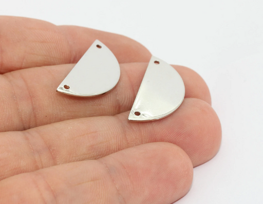 Silver Plated Half Circle , 11x25mm Semi Circle Pendant , MTE600