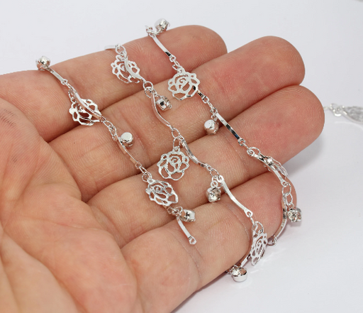 Silver Rhodium Plated Anklet Chain, 3mm , Soldered Chains, BXB74-1