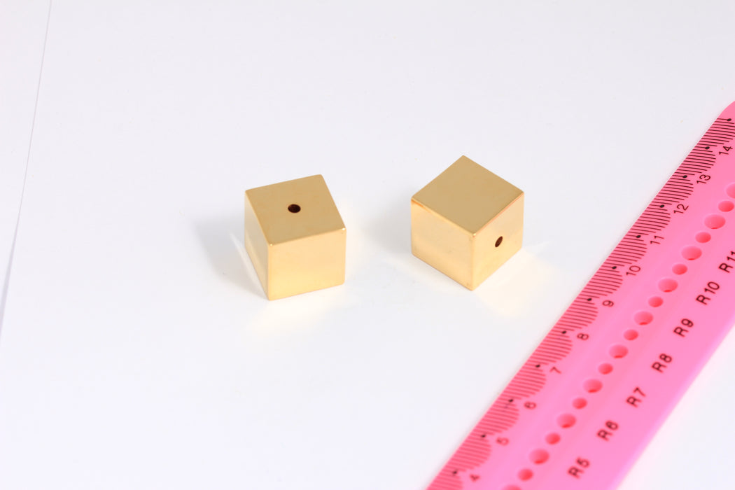 16mm 24k Shiny Gold Cube, Solid Cube Beads, Tube Beads, Large Cube Beads, Spacer Beads, Connector Beads, Gold Plated Findings, ROSE163