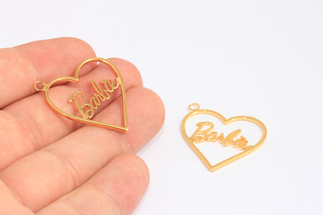 30mm 24k Shiny Gold Barbie Heart, Heart Jewelry, Heart Pendant, Dainty Heart Necklace, Gold Plated Findings, CHK368-3