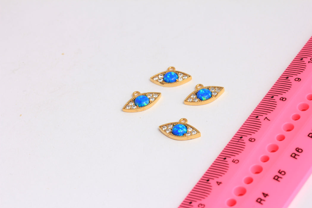 9x14mm 24k Shiny Gold Evil Eye Charm, Micro Pave Evil Eye Pendant, CZ White Stone Evil Eye, Bracelet Charm, Gold Plated Charms, ROSE68